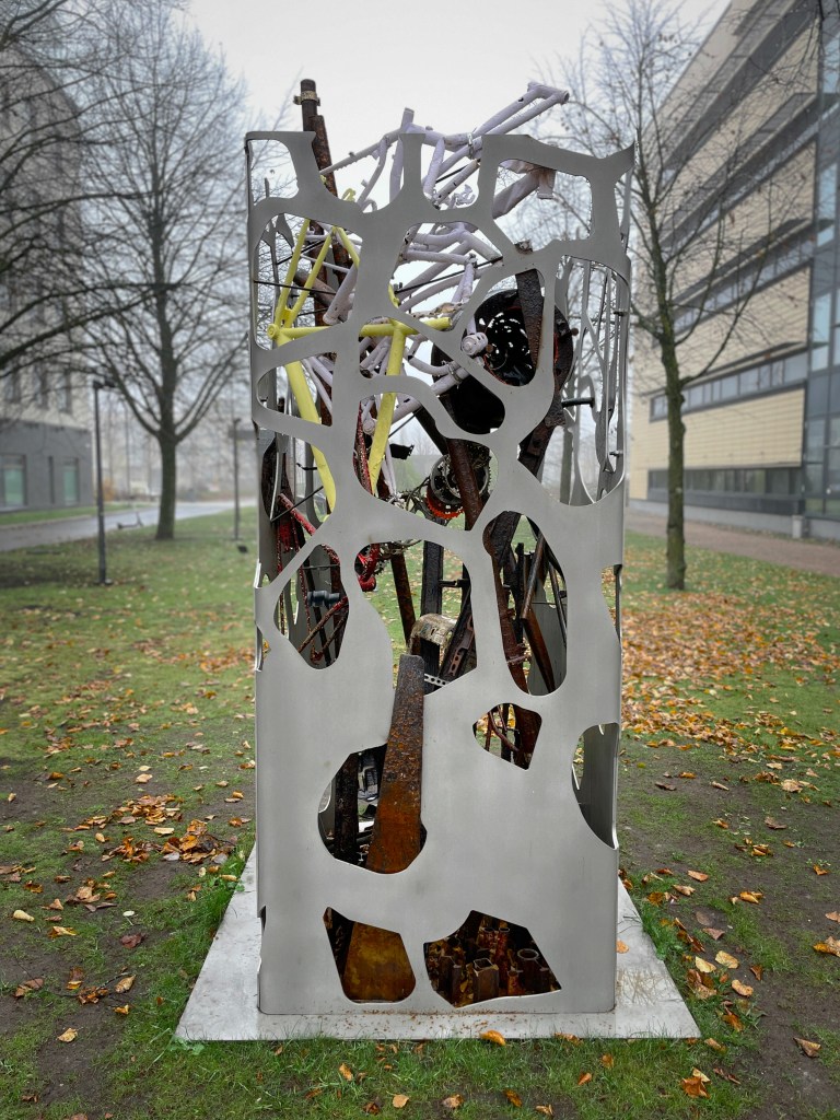 Saimaan salaisuus was commissioned by the city of Lappeenranta. The proposal for the artwork won the public art competition organized by the city of Lappeenranta in honour of the city’s green leaf 2021 title. The statue was built mainly of metal junk that divers hoisted up from the bottom of lake Saimaa in two public events in the winter of 2022. The work was revealed in august 2022 and is located in Paasikivenpuisto, Lappeenranta.
